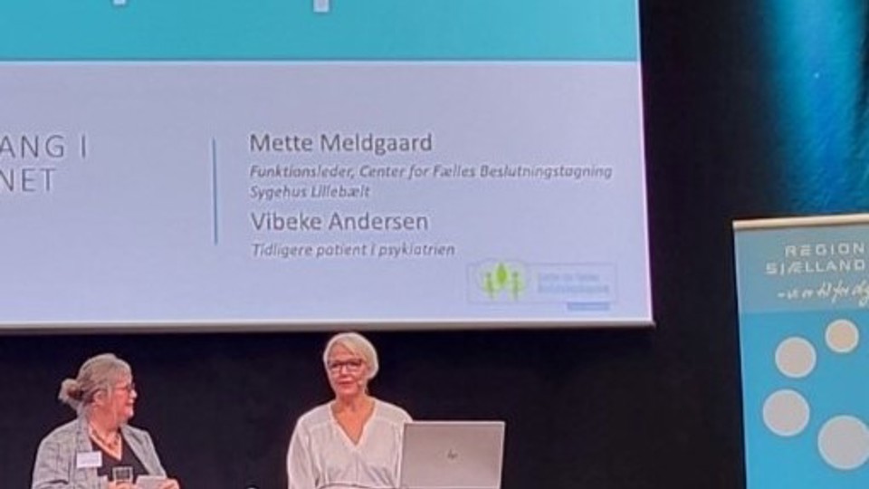 Til Region Sjællands Kvalitetskonference 22/10 2024 deltog patientrepræsentant Vibeke Andersen fra Psykiatrien i Region Syddanmark med følgeskab af funktionsleder fra Center for Fælles Beslutningstagning, Mette Meldgaard.